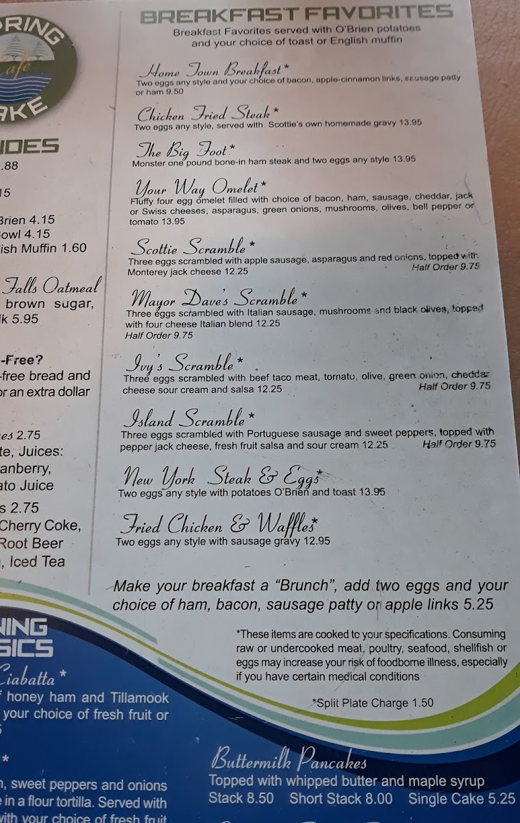Welcome to Spring Lake Cafe, a charming eatery nestled in Fircrest, WA, where comfort meets flavor. Located at 616 Regents Blvd, this local gem entices with its inviting atmosphere and a menu that speaks to the heart of traditional dining. Breakfast lovers will delight in their stable offerings, from fluffy egg white omelettes packed with fresh greens to the beloved Island scramble. Try their decadent croissant toast for a truly delicious morning treat.